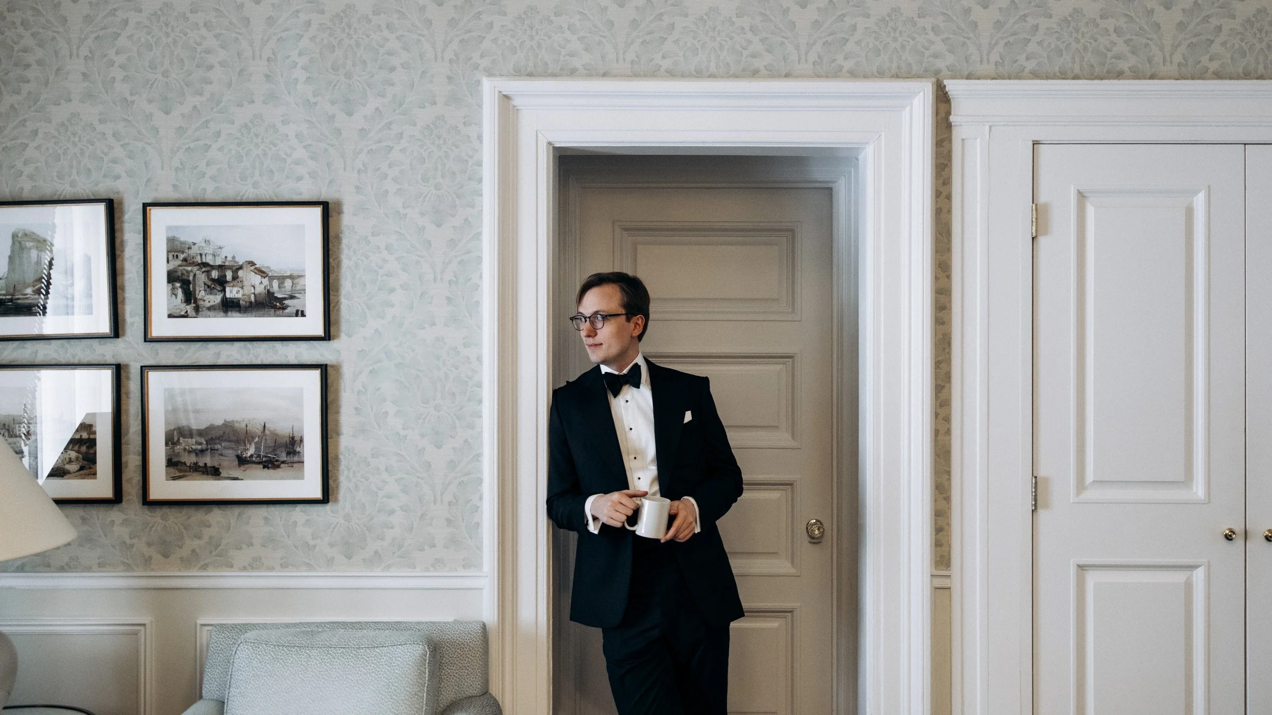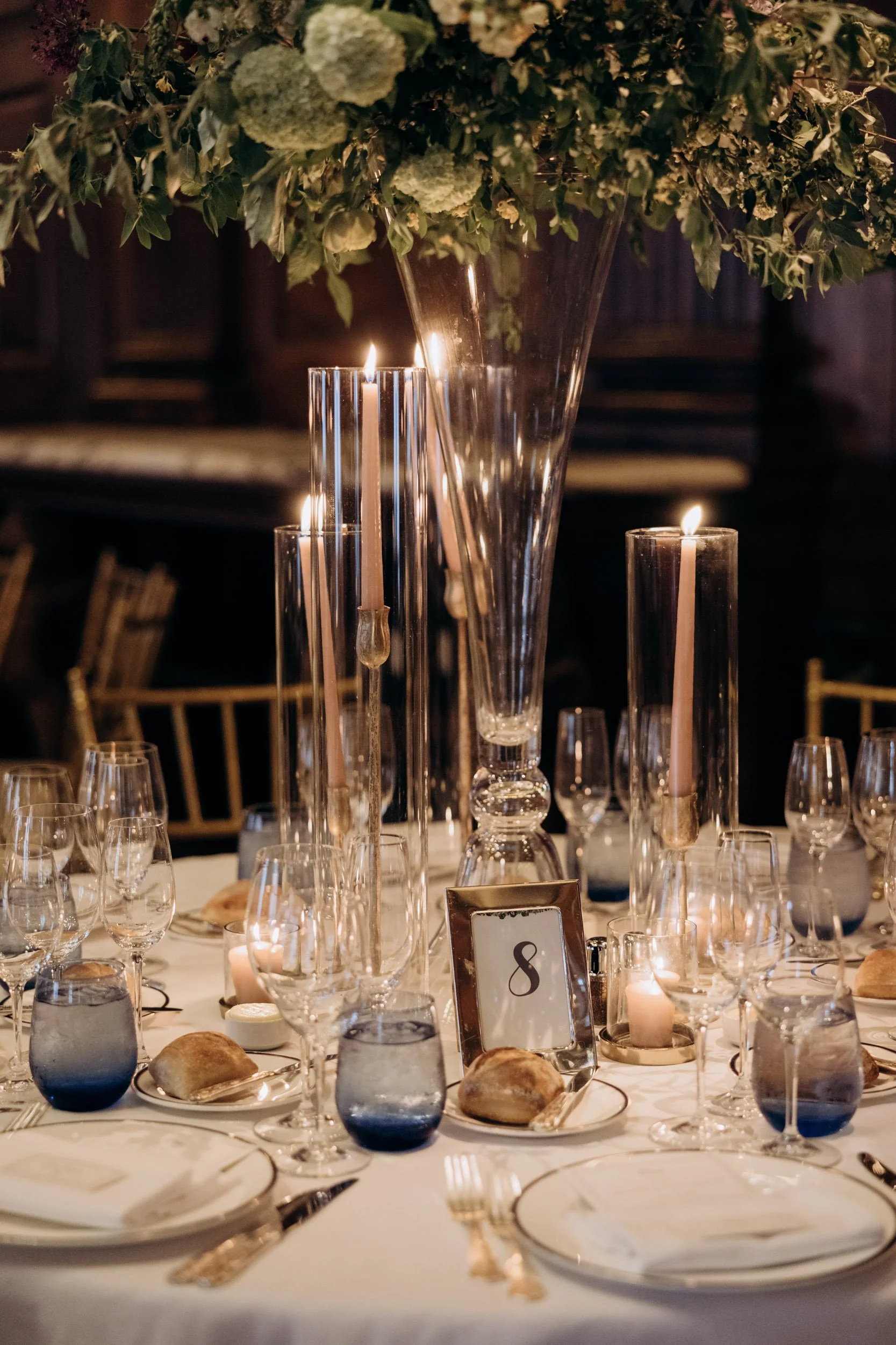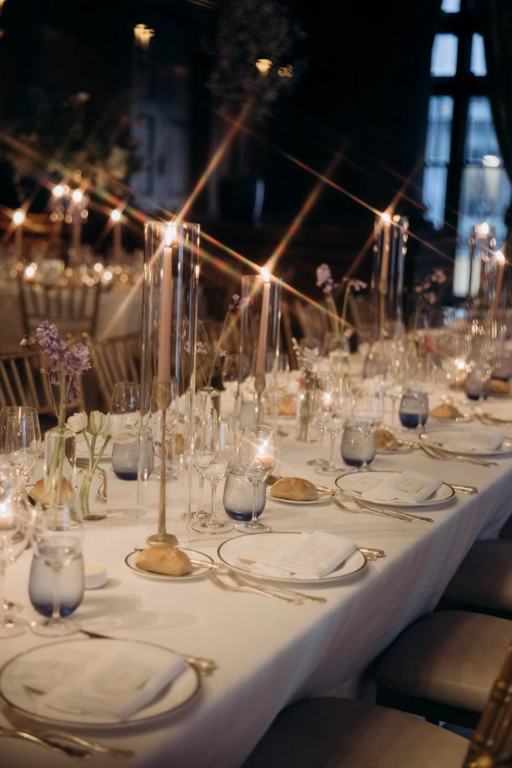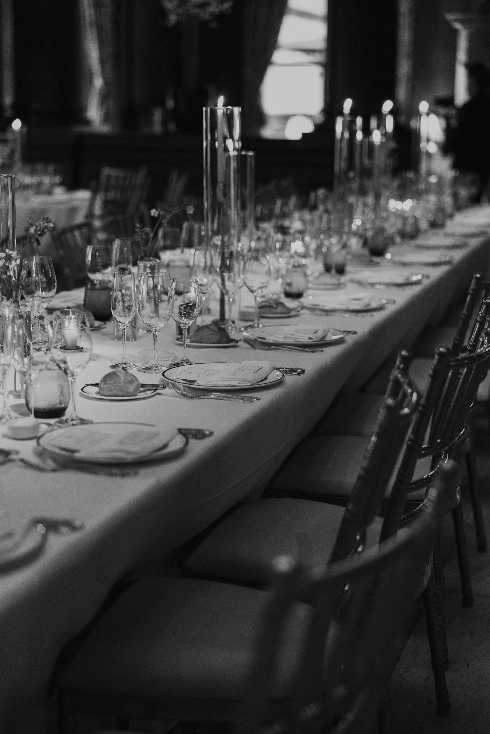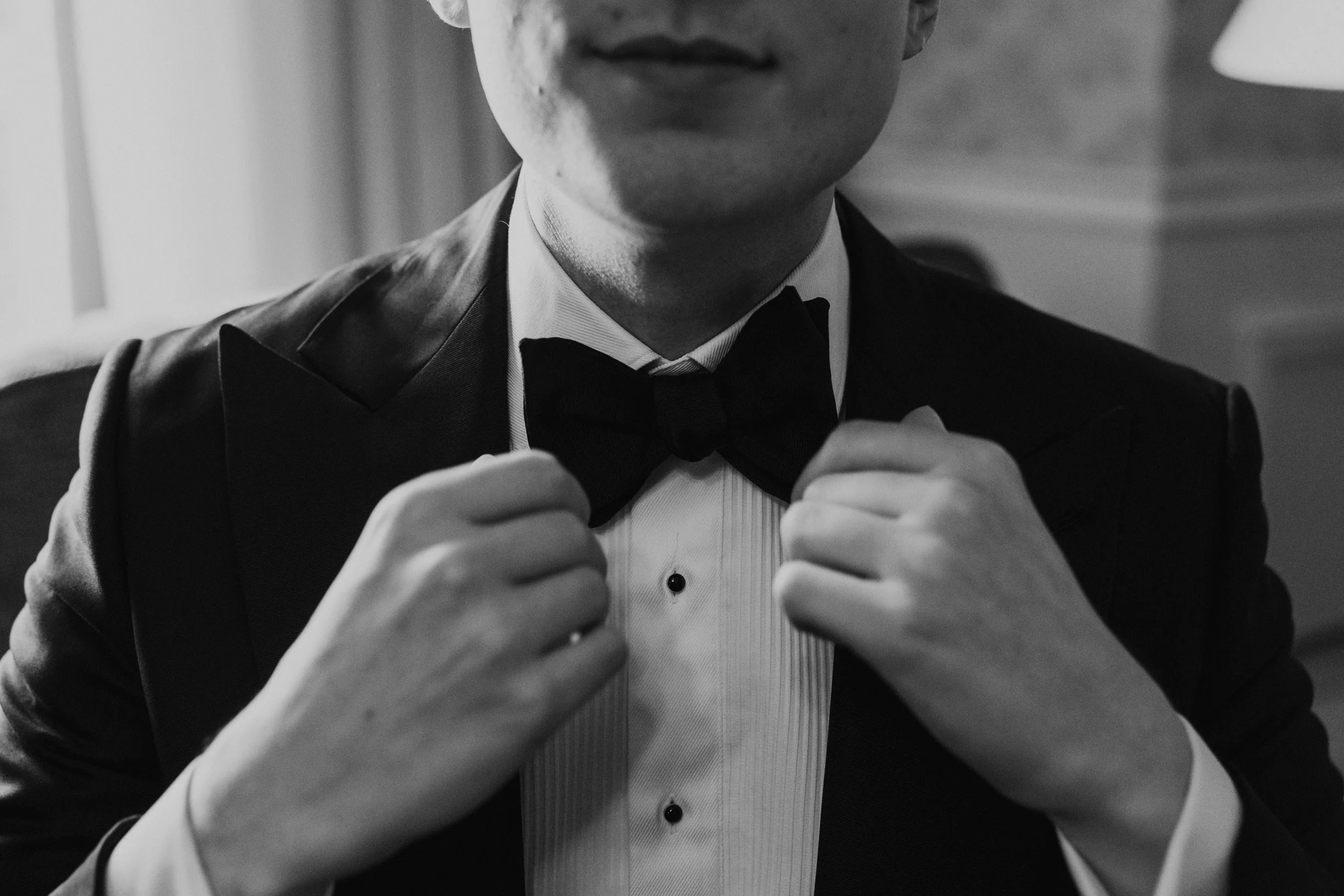 The entire day unfolded inside the New York University Club. The couple got ready in the private rooms upstairs, surrounded by family and the quiet anticipation that builds before a ceremony. The ballroom, with its chandeliers, dark wood paneling, and timeless design, hosted both the ceremony and reception. It’s a venue that feels classic and established without being overdone — elegant in a way that photographs beautifully and naturally lends itself to editorial wedding photos.